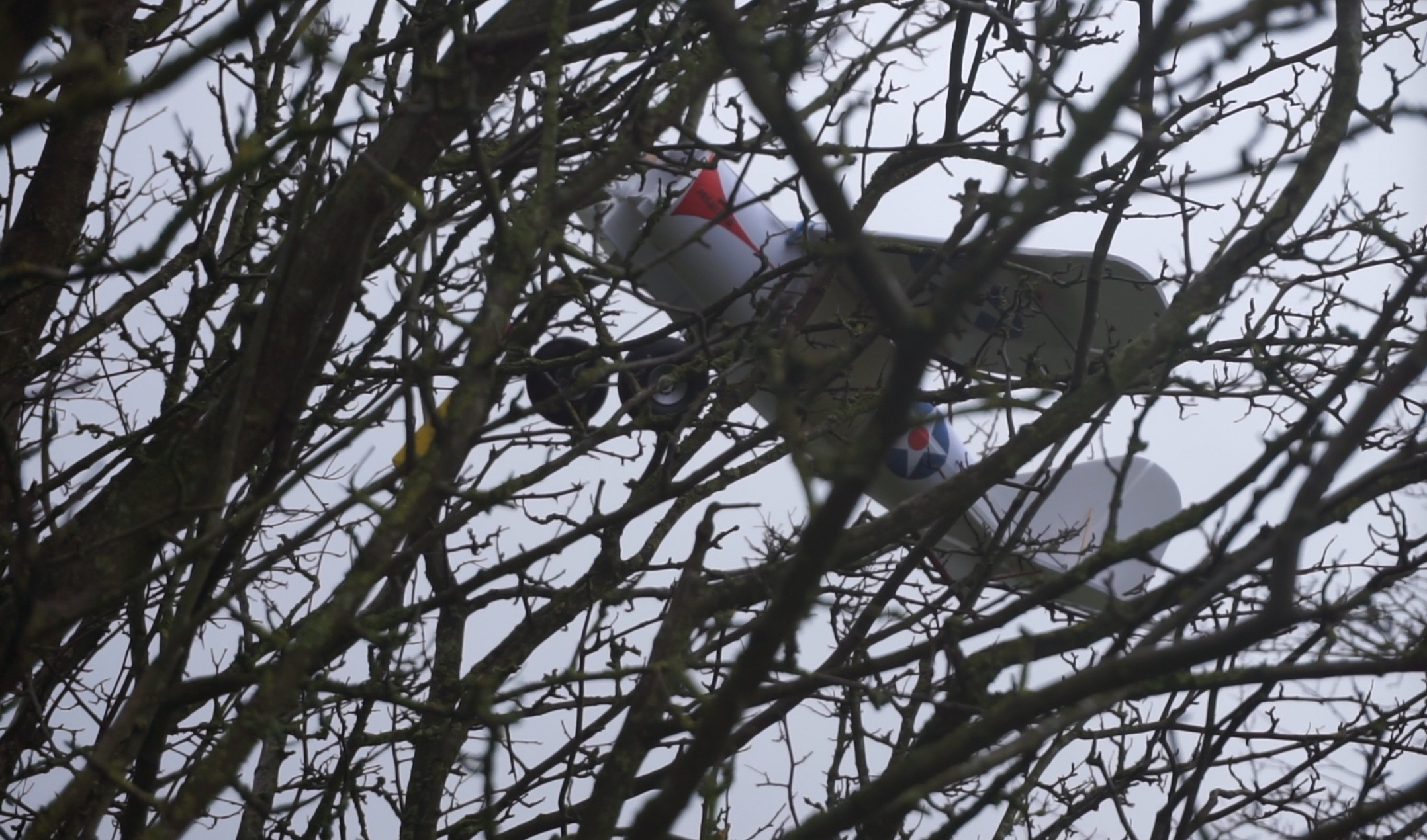 Impact! With a crash, the plane hit a small tree bordering the flying field. Thankfully it wasn't too high up.