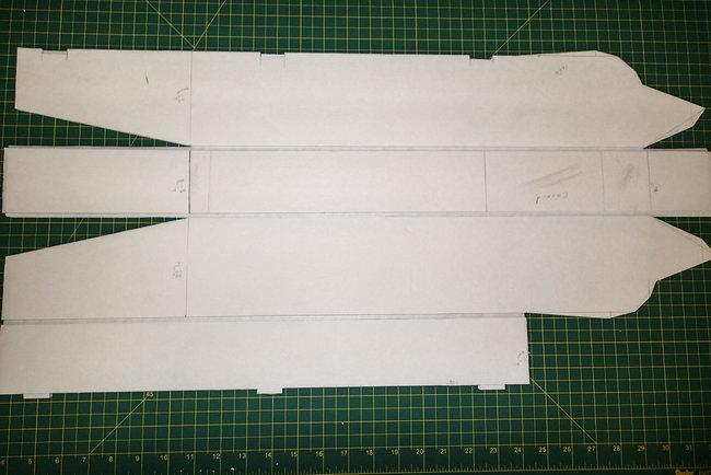The wing spars use a tab similar to what the FT spitfire has to join the two angled wings. While these plans don't show a proper cutout for the tab to rest against the opposite spar, it was cut in there.