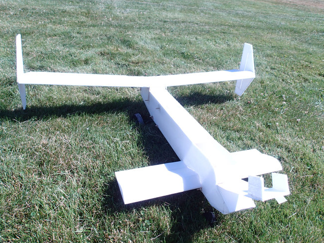 I haven't successfully flown it yet, as I need to make another pod with some beefier components. My initial hand-launched test flite didn't move more than 20 feet horizontally before the air speed dropped to the stall point. The HK donkey 1550 just doesn't have enough power to make this thing go. While this is supposed to have a very wide range of allowable CG, I had to mount my 3s 850 battery all the way up front to keep it in the region where I believed the proper CG should have been. The under-powered first flight was at least mosttly flat, so I didn't mess up that much.