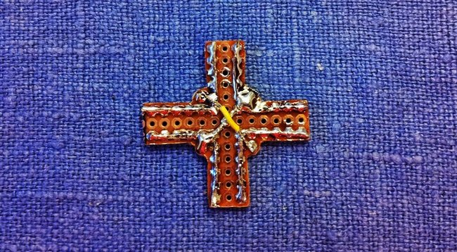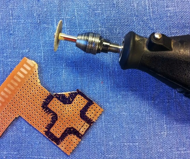 The PCB cross was cut with a Dremel tool: