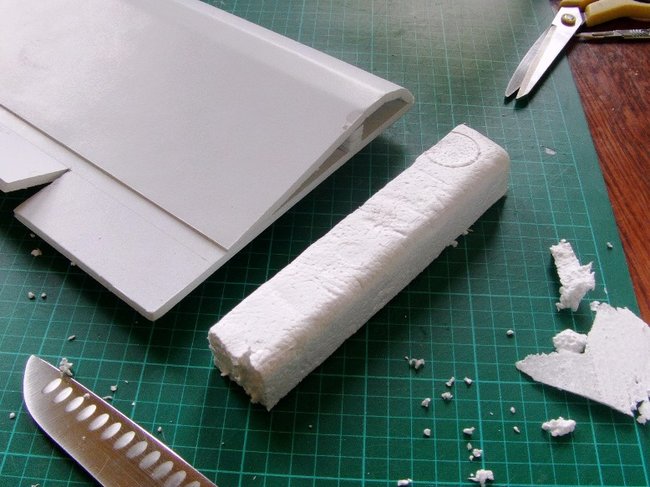 I was lucky to find some foam with a slot in it and a bit of preformed shaping - I cut this to an oversize outline and glued it on with hot glue.
