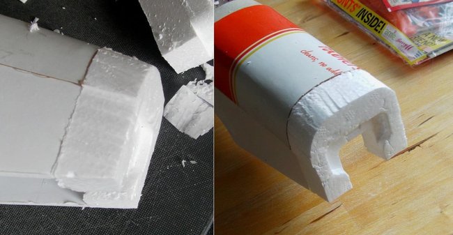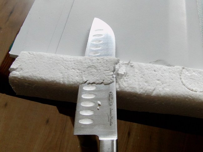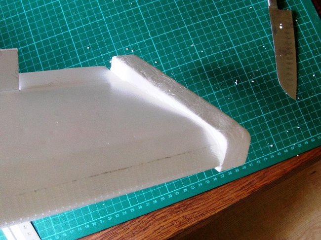Once the glue is set I pare the foam down using a very sharp kitchen knife.