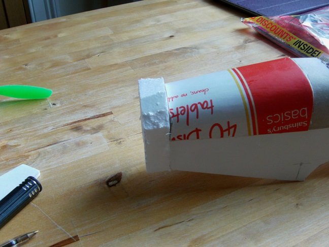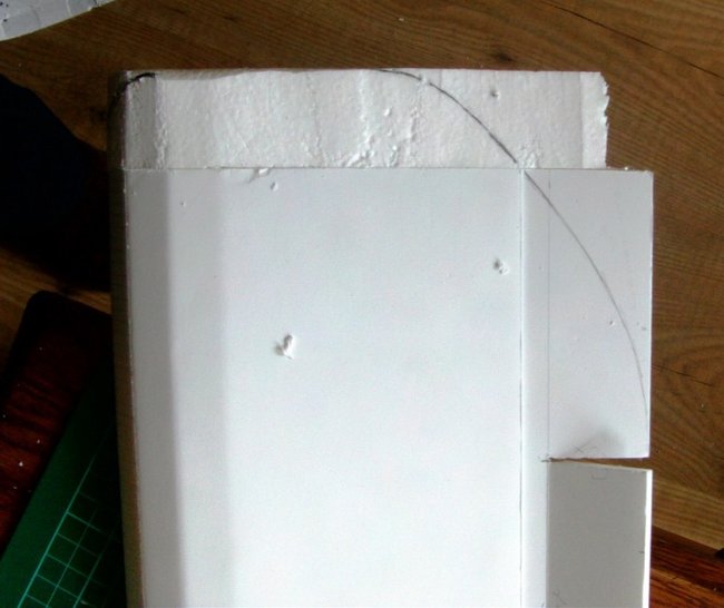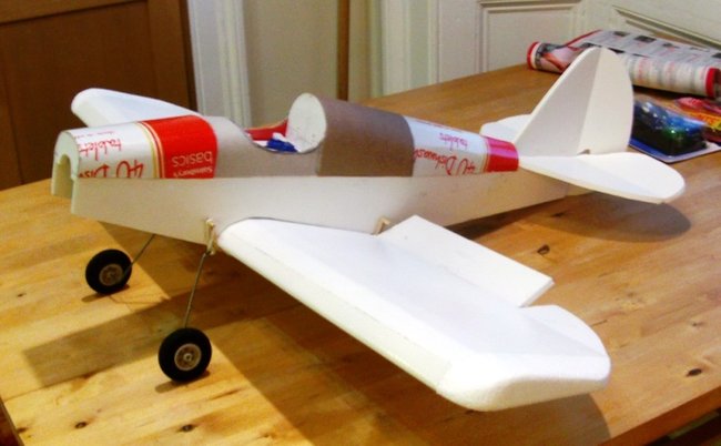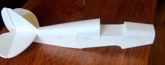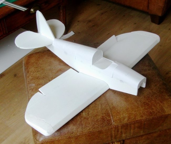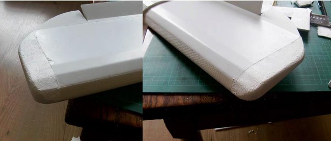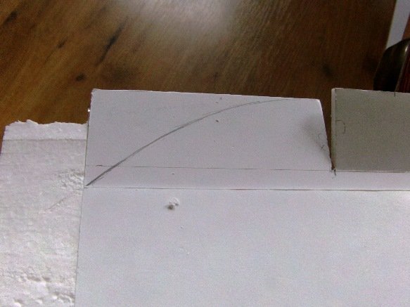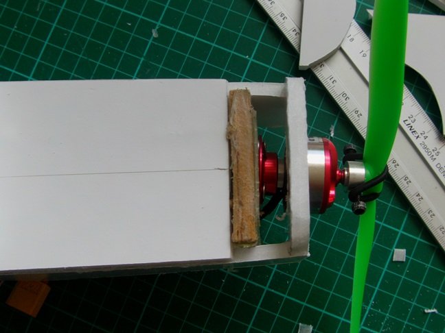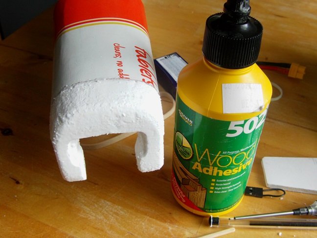 I was able to find foam that would add another 4cm each side, increasing the wingspan to 78cm. You could just build the wing to this size from the start, (most likely using more than a single sheet of foamboard) or you could leave the wing clipped at 70cm. A smaller wing would influence the slow speed flying, but I suppose not a great deal – in fact, a shorter wing might allow greater manoeuvrability and top speed...anyway, I like the way my Tribewt flies so I’ll stick with the foam. I like to use a fairly dense polystyrene which doesn’t pick apart too easily.