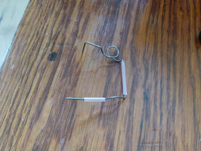 Here’s my steering for the tail. Note the hinge tube trapped in the middle as you bend it up. The bit at the top is for the wheel, the bit at the bottom is a lever that sits against the rudder.