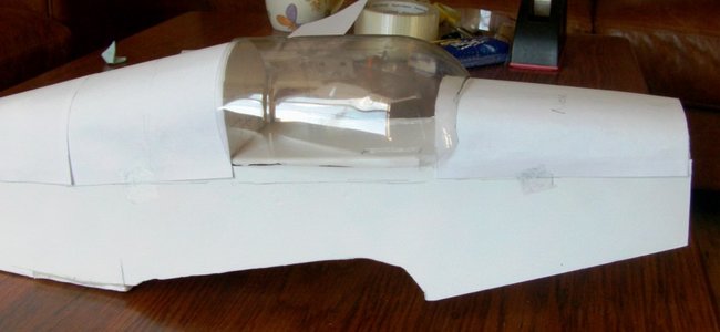 So here it is with the cardboard turtle deck glued in place. Note that I raised the height of the cockpit sides in this final arrangement.