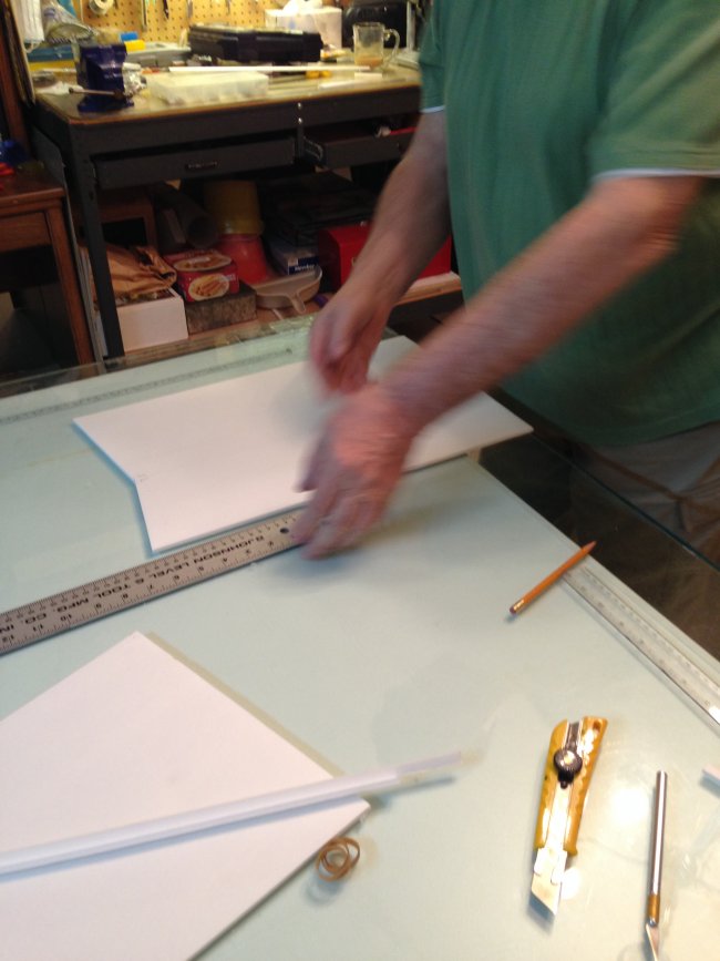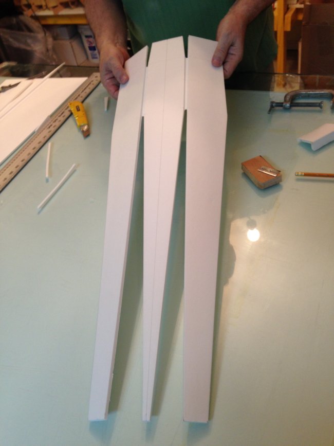 Make the spars first and cut out the two main wing pieces. Bevel the leading edge, Terry build a tool to cut the bevels which made it even easier to make.