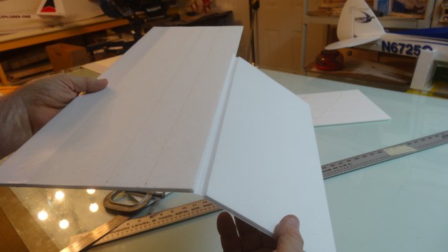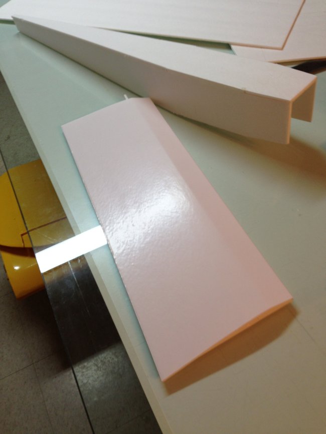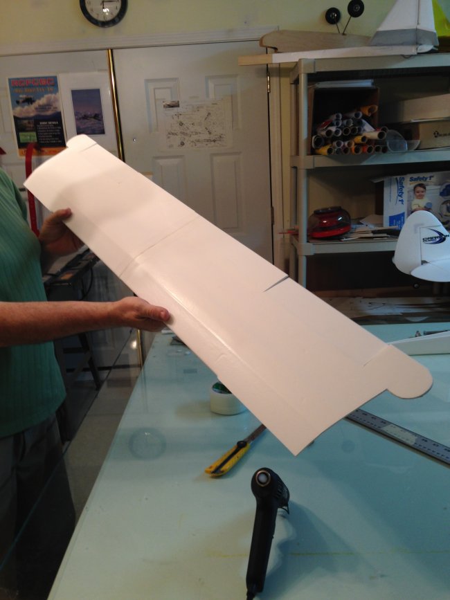 Then bend the airfoil as normal (and you could glue skewers into the airfoil bends if you want extra strength, I didn’t, instead I this time a vinyl covering for smoothness, paintable surface and somewhat resistance on one side of the foam board).