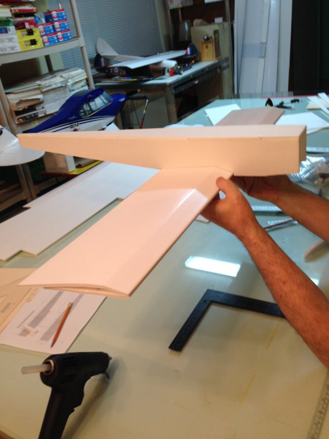 Glue the stabilizers to the fuselage, making sure it is square, and glue.