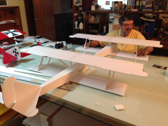 I'm following your plans and building the Fokker first. I've been out of the scratch build game for nearly 50 years and a grandson got me going again is just seven. I'll keep you posted on progress. I had been experimenting with foam which is all new to me to build a very nice spitfire and ME109 and didn't complete redesign of the FT baby blender as the original design was quite problematic. After watching your Fokker I realise one of the problems with the original may be blender was the small wingspan so I increased it to 90 cm to stop torque role and I insert the bottom wing into the fuselage rather than the way their design and added cross struts to stop the flex