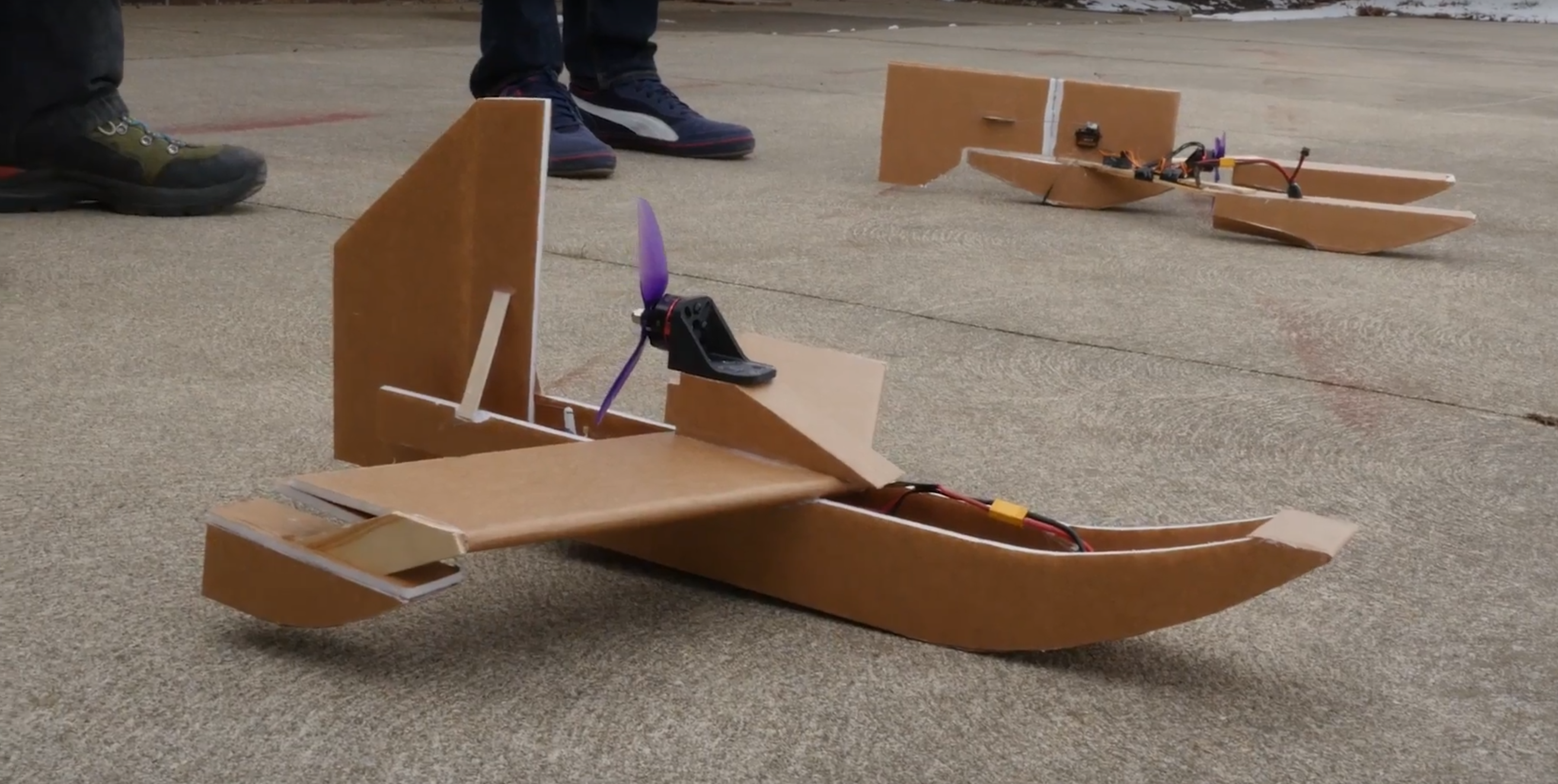 Chad and Jeremy's crafts were ready to go first. They looked pretty sleek and were made up of mostly foam board, a few wooden struts and our favourite hot glue.