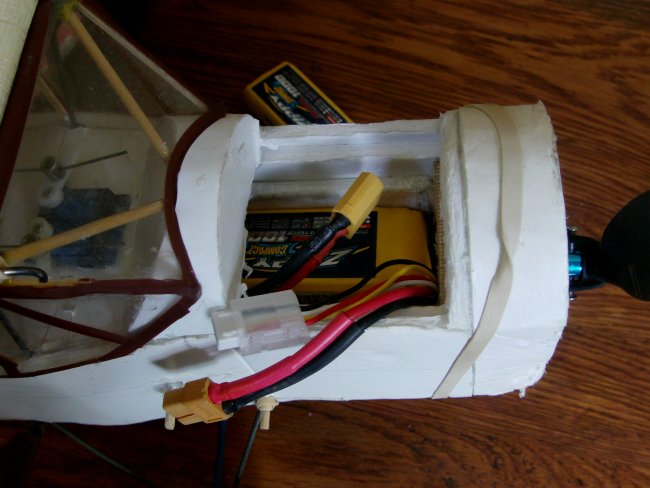All sealed-up and ready to fly. Note the extra fitting on the battery balance lead – see my other article on “battery mods” for an explanation of this.