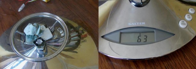 The addition of an extra battery meant I could remove a pile of nose weight. Again the gods of airplane balance were smiling – I was able to remove every single bit of dead weight – 63 grams/2.2 ozs – to get the C.G. back to where it was before.
