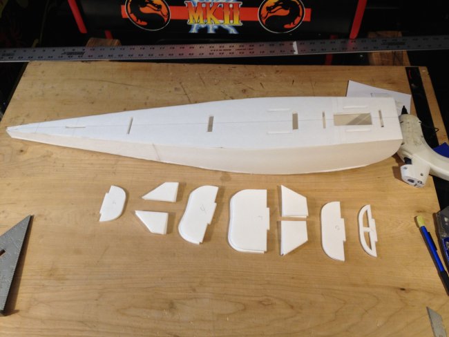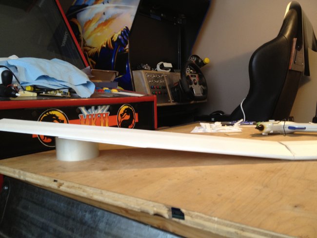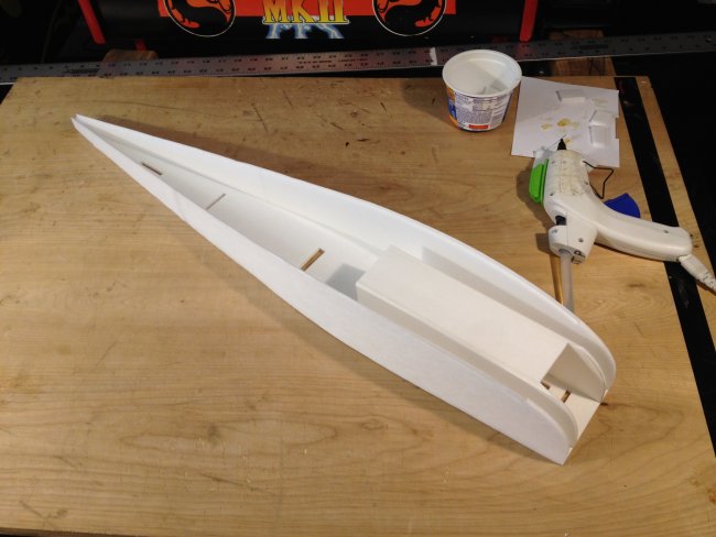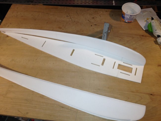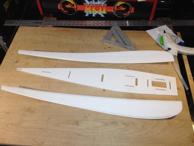 Cut holes for servo wires. Typical stuff...... Add your wing spar, then the wing shims about a 1/4 inch from the edge. Then glue it together like you would a spitfire wing for example. Front half then back half. Easy peasy.