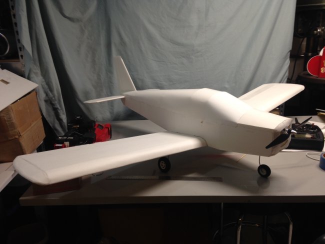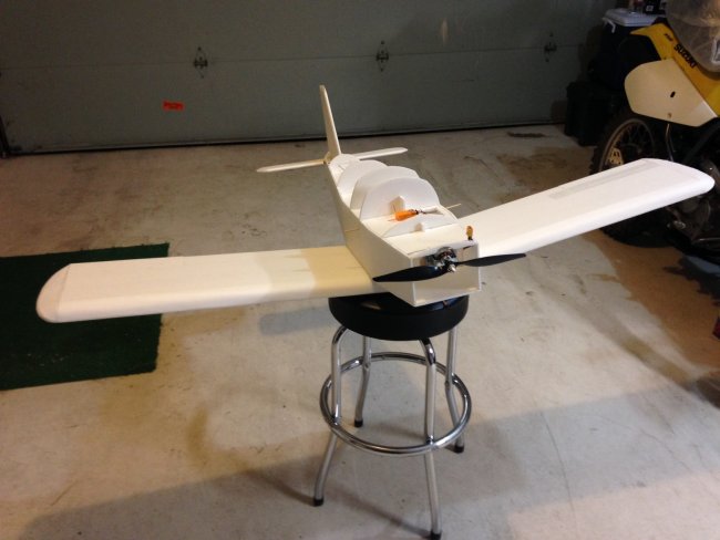 I thought it would be fun to build a larger aircraft, and decided to try the Cherokee 180. I have flown the full scale during my pilots licence training. It was a good flying aircraft with great landing characteristics. I hoped this would translate over to the DTFB RC world. I started with the wingspan of about 60" so each wing could be made out of one sheet of foamboard. I also made the wing more scale by rounding the leading edge.