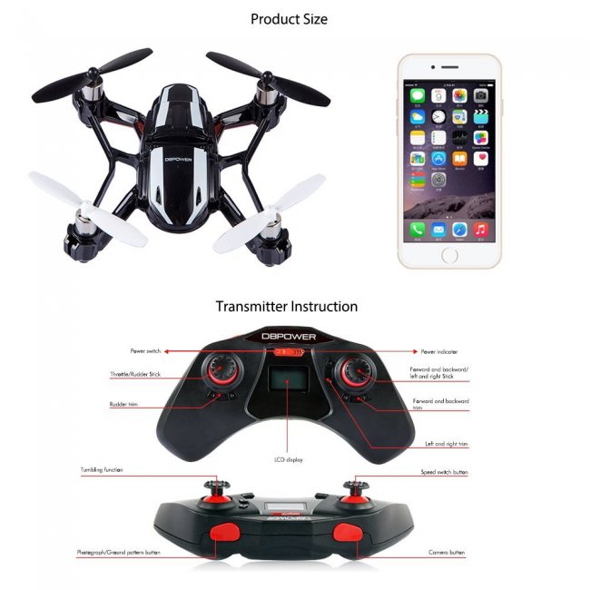 Upon first inspection, I noted the quad is built extremely well. It is molded in hard plastic, and it has some weight to it. It does not feel as if it has been made cheaply. It is colored white and black, with black and white props. This is helpful for orientation of the quad, kinda nice that DBPower took this into consideration. Everything seems extremely sturdy and could survive multiple crashes easily.