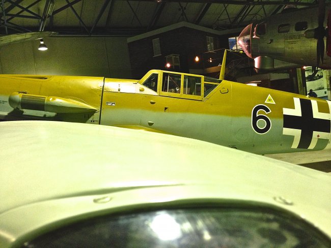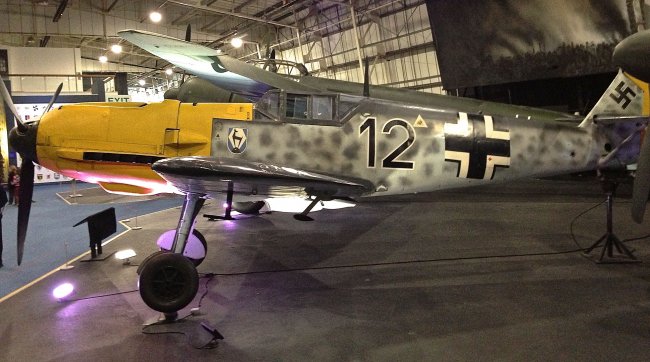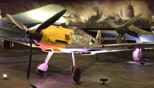 I visited the RAF Museum in London, which I highly recommend. I have gone back and updated all my old posts with pictures of the real planes. I put a few extras here since they had two nice Bf109s, one European and one desert.