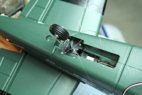The retractable steerable tail wheel need it’s pull-pull wires installed.