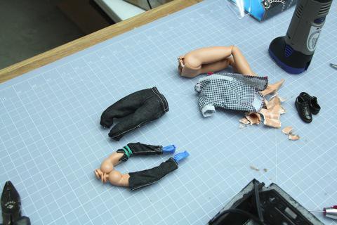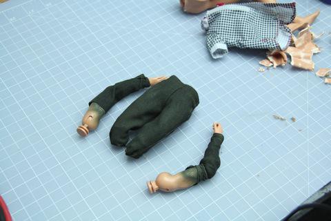 Painted the pants and selves green. The pants are stuffed with foam to save weight.