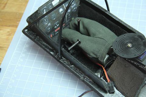 Servo hooked up in parallel with the elevator servo. Makes the arm pull back and push forward on the joystick.