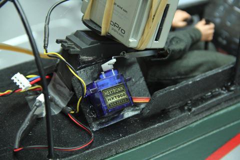 Underneath the legs is a servo connected straight to the joystick. Paralleled with the aileron channel to make the joystick move left and right.