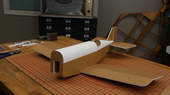 Install the formers on the fuselage, then install the poster board on the back and front of the fuselage.