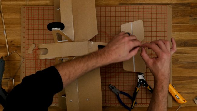 Install the cobains on the wings. Use the brace to make sure the wings and struts all stay together while the cobains dry.