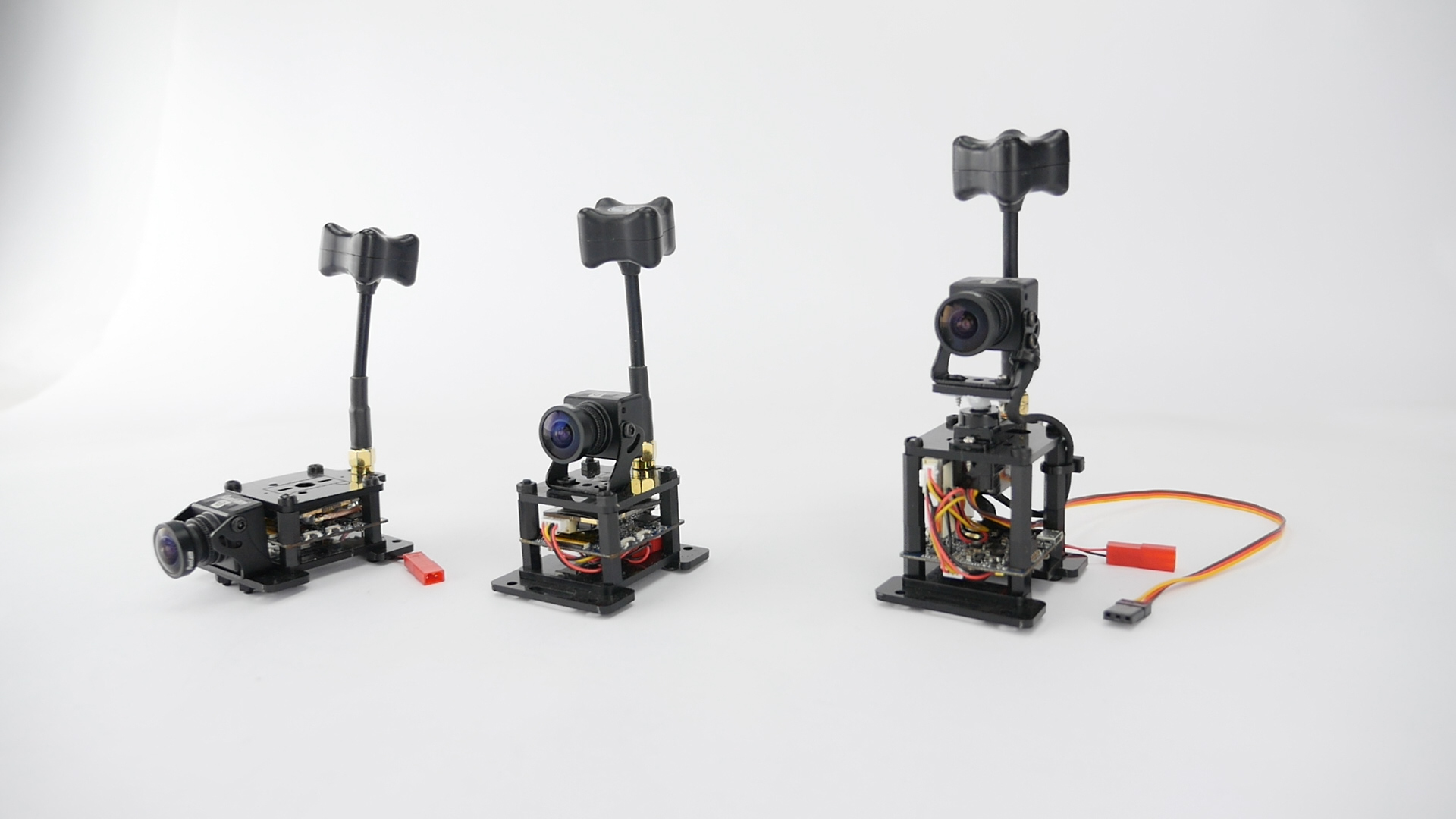 There are two versions of the kit, one is fixed and the other has a pan servo so you can look left and right as you fly. The fixed version has several different configurations that it can be built as depending on your setup.