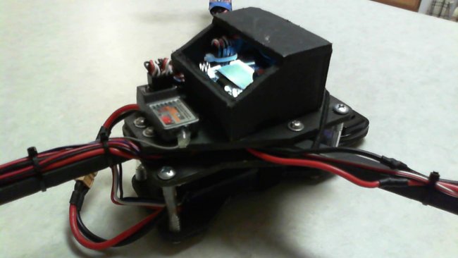 I've kept it pretty simple. I used the servo mechanism from simplecopter, the body from rcexplorer, and the camera mount from the Fortis Titan. The tricopter is all wood and hardware from homedepot. Electronics are, KK2.0, F-30A SimonK flashed ESCs, Turnigy D2826-10 1400KV motors, Flashed Turnigy 9x, Turnigy Nano-Tech 3S 2650mah 25-50c battery, 8x4.5 Slofly props, and the cheapest Corona metal gear 12gram servo I could find at $5. The servo has been through 2 major crashes in which I've broke the tail mechanism and is still going strong.