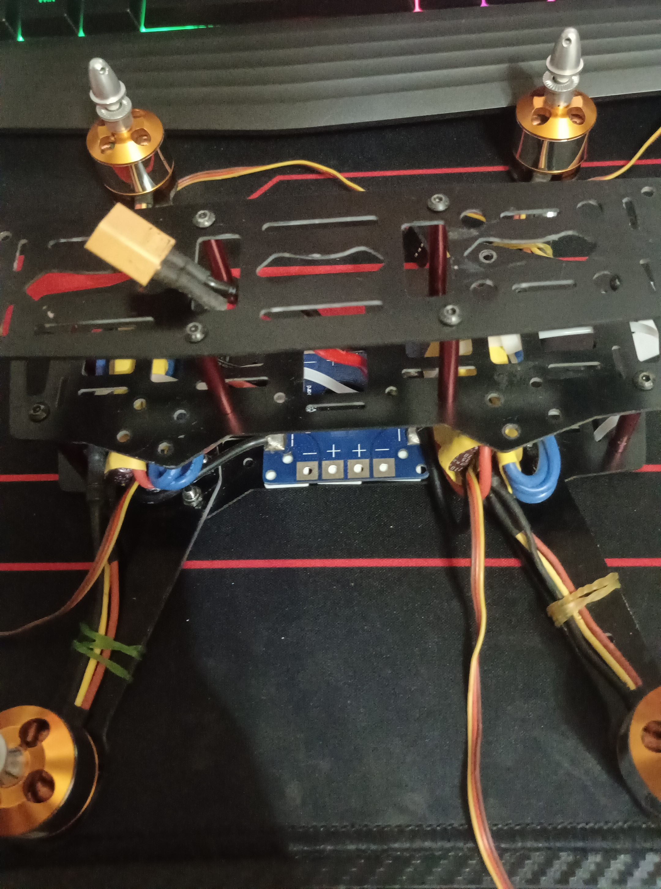 Attach the ESCs to the frame, securing them with ties or adhesive.