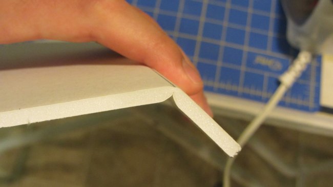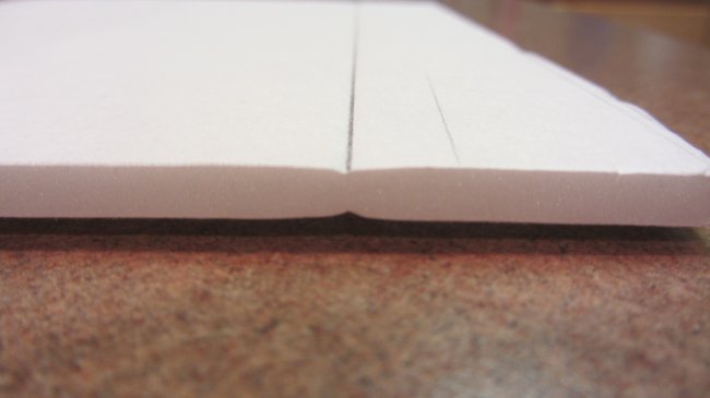 The objective is to melt the foam under the paper and work the hinge until the paper on both sides of the foam meets at the hinge line.