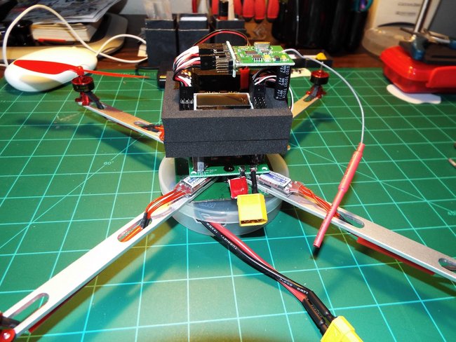 After the maiden flight and while close to the ground the copter did an erratic flip after about 3-4 minutes of flight time. I was pretty confused as to what happened so I took the copter inside and started thinking weight and possibly the kk2 board settings. I ended up taking the battery holder off and attaching the lipo to the bottom with velco. I ran a few more tests and still only 3-4 min of flight time on a fully charged battery. Thinking about weight, I started to google the flip issue and read on the forums that some folks were isolating a failing ESC. Before replacing the motor I decided to test this setup again. Reproduced the erratic flip and immediately made contact with all the ESC's and motors. I felt motor #1 and it was well above the normal temp. So I decided to re-soldered the #1 motor and ESC's connections and "BAM" I was now getting 6-7 minutes of flight time without any erratic flips. Now having a good battery, ESC's, and motors I was able to then work on the kk2 board settings. I read a lot about various KK2 settings and tested many configurations. Let me know if you need help....I will try my best!