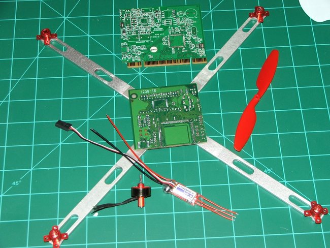 For more stability I used these aluminum arms from old computer parts. (dimensions - 13in x .5in x or 330.2mm x 12.7mm) I also used an old network card and removed all the integrated chips and soldered parts. Then I cut it down and applied it as a base for the aluminum arms.