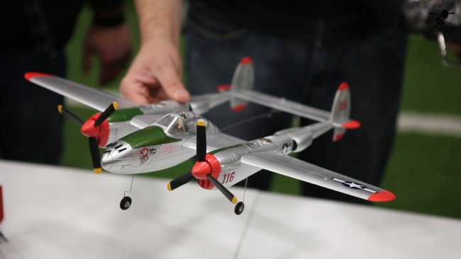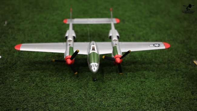 The P-38 Lightning dosen't have any gyro technology on board but this gentle twin engine carries no bad habbits. There is no differential thrust but does have a steerable nose wheel. The small brushed motors give ample power and long flight times.