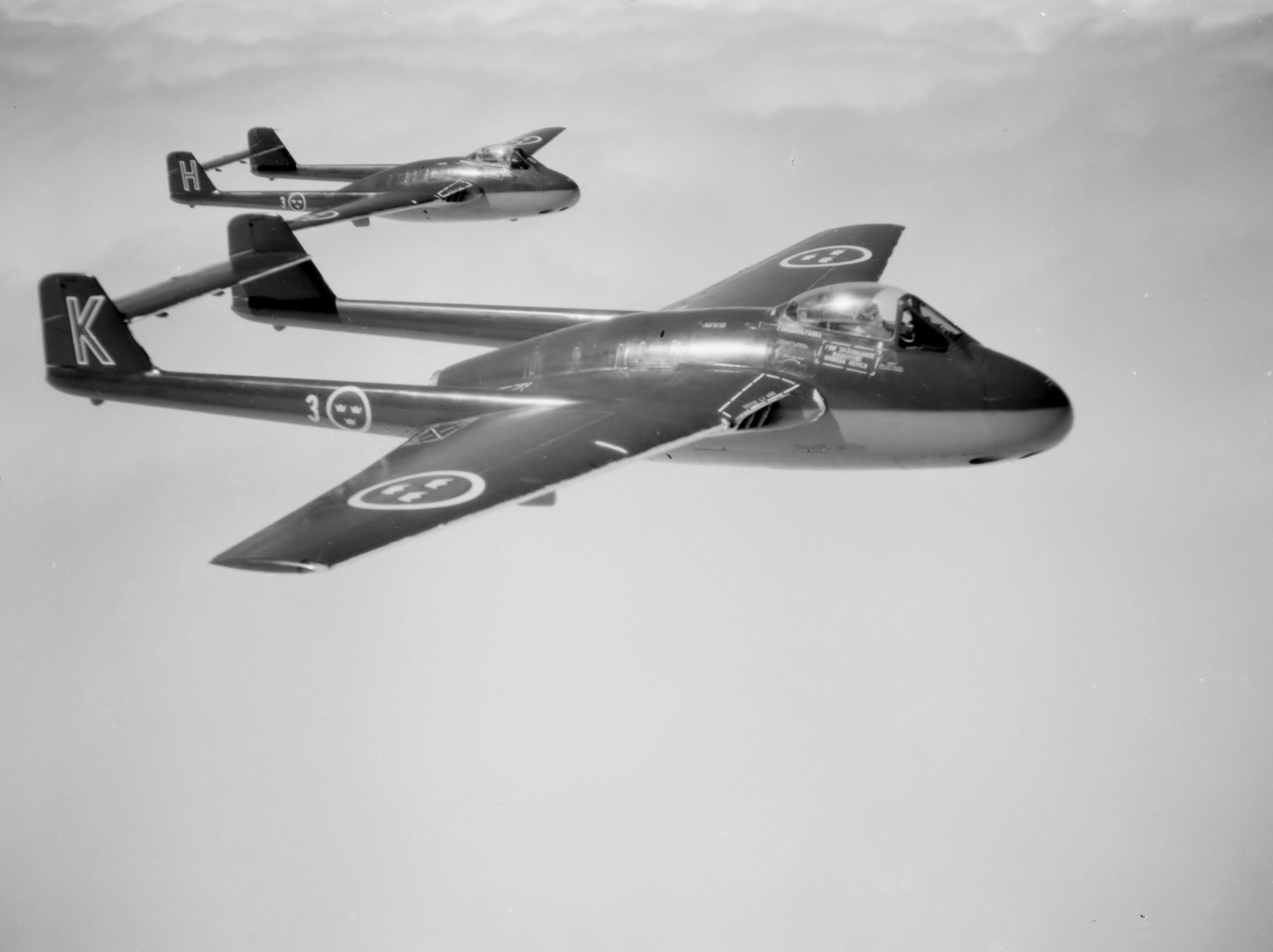 The design is based on the de Haviland Vampire, a British first generation jet fighter from the 1940s and 1950s. Read more here.