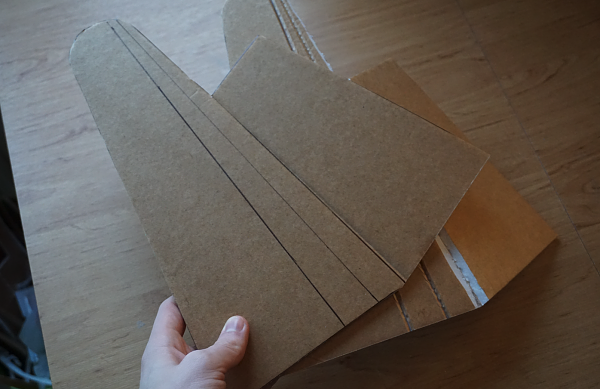 These are the wing pieces. You may want to use a wooden ply spar to strengthen them instead of relying on a foamboard spar. Again, it's up to you!