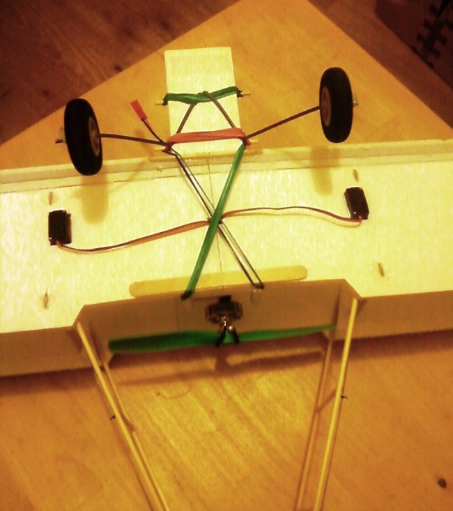The suspension struts were made using bits of lego! I later scrapped the whole assembly to reduce weight and went back to a simple wire undercarriage.