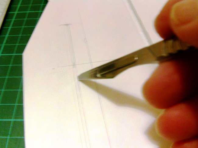 My folded spars never come out as reliably as the laser-cut kits do, so I don’t cut the wing locating holes for the tabs until I have the spar assembled. Equally, I tend to cut one side of the spar profile, then fold the spar halves over and use my first cuts as a guide to cutting the second side. That way there’s no problem of a mismatch if it doesn’t fold just right.