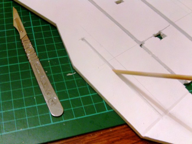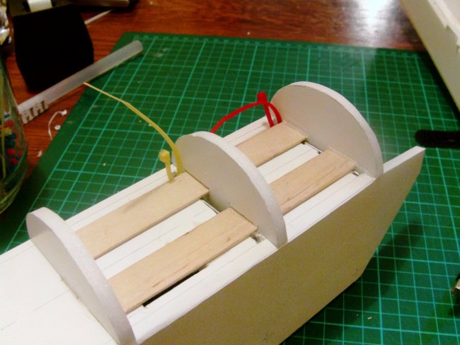 Tail assembly ‘carefully’ glued in place, and I added a couple of little deck formers right at the back.