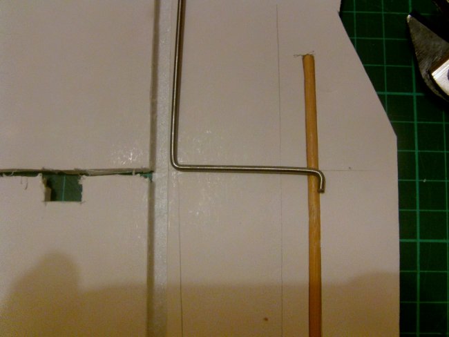 The cabane mount is going to catch on the skewer but I don’t want it to stick out of the side of the fuselage, so the first right-angle bend is only about 4-5mm long. This 2.3mm wire produces a tremendously strong and almost rigid cabane frame. I think you could get away with lighter wire, 2mm, but the frame would have a little more ‘spring’ to it. Nothing you’d notice in flight, but the extra flex might cause the thread and CA joins to release over time. No problem if you go for a copper wire and solder join.