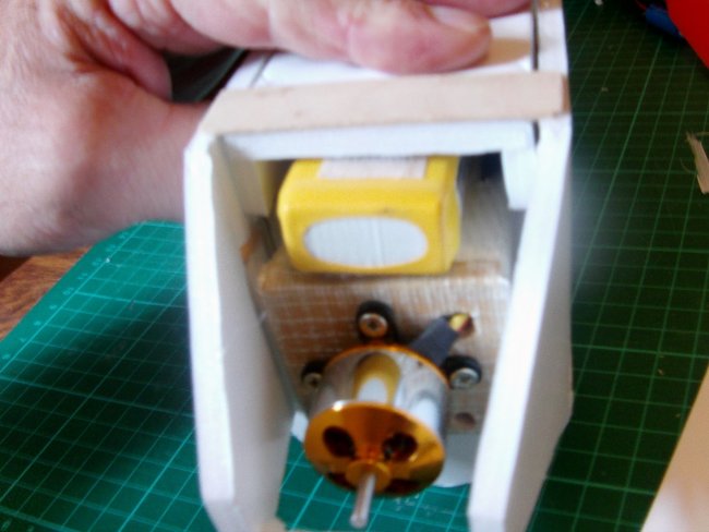 For the next bend the mount needs to span the inside of the deck. There’s a little ‘wiggle-room’, but make it too wide and you’ll need to dent the fuselage sides to get it to fit, or make it too loose and you leave less space for your power pod.