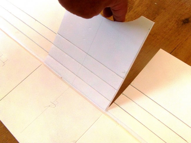 Score and introduce a fold at the edge of the centre panel, ready to make the dihedral.
