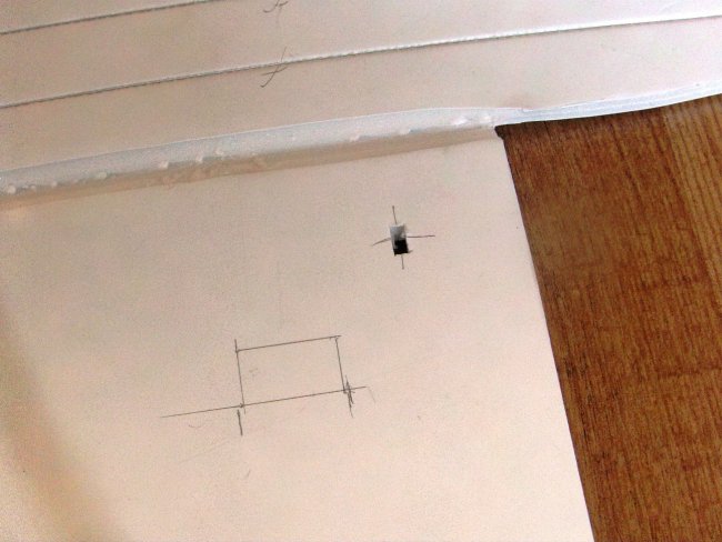 I marked an initial position for the skewer on the insides of the fuselage. In this first position I quickly realised the skewer wasn’t far enough down the fuselage side, for reasons I’ll demonstrate shortly.