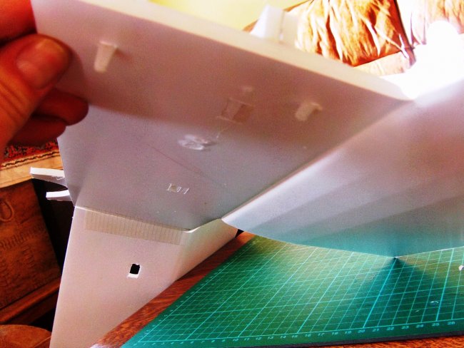 There are the locating tabs on the top, ready to fit in the slots in the box fuselage deck.