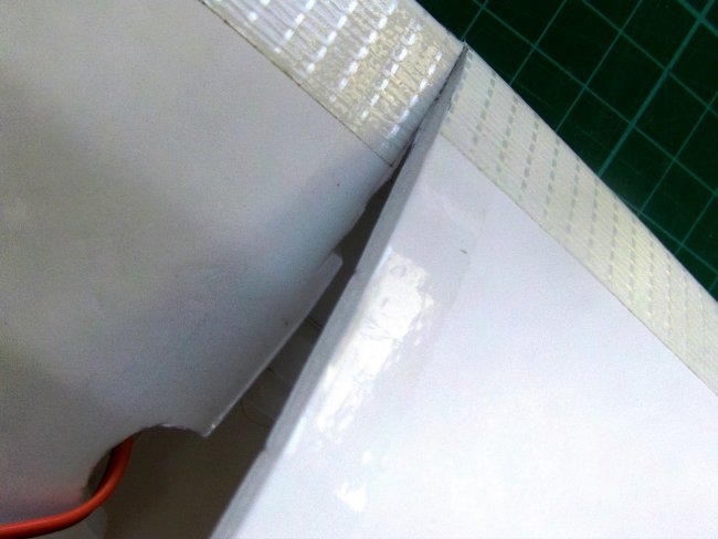 With such a large balanced rudder there’s not much length of hinge, so I decided to reinforce it with tape.