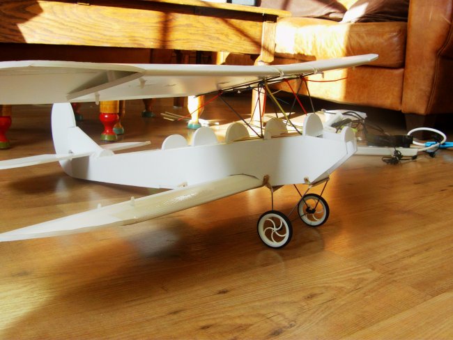 It turned out pretty nice. This plane however, turned out to be way 'over my head' since I had zero experience in flying these things. So, before I'll start building your bi-wings I went back to the scratch table and built the FT Tiny Trainer. I finished it but I still have to go out and fly it.