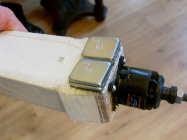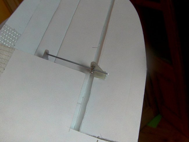…and the elevator. Control horn glued and screwed in place! Belts and braces…