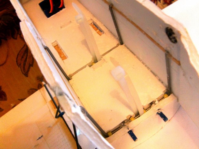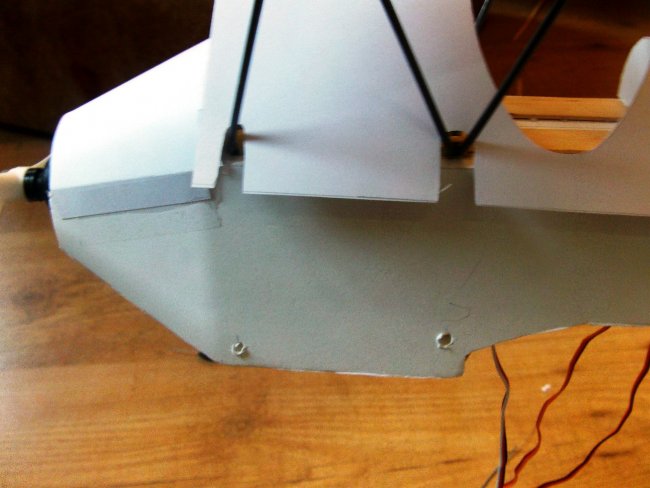 Holes cut for the strut mounts – just big enough to slide the arm of a ‘9gram servo’ through.