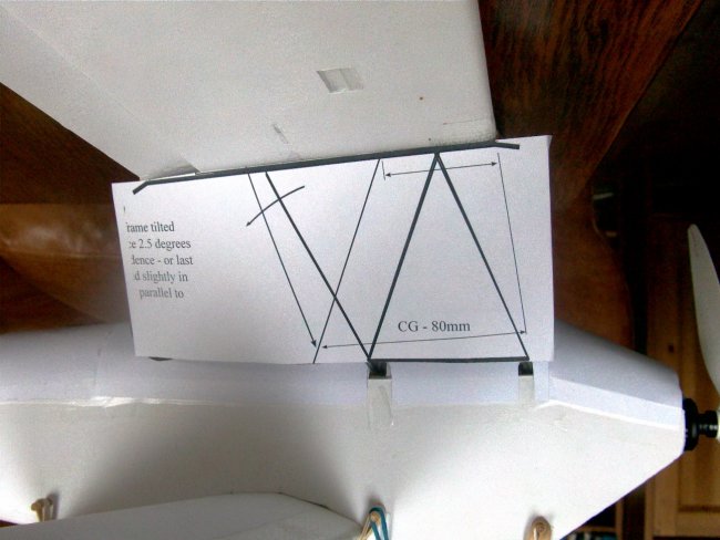 The CG on this flight was 84mm back from the leading edge of the top wing.