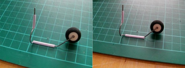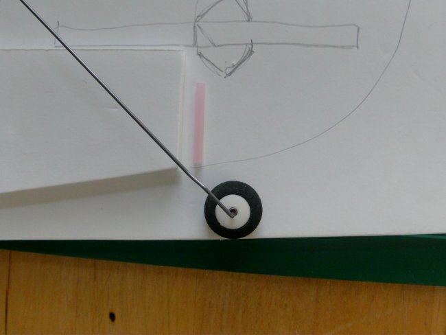 Last bend. Turn the wire through a right angle until it points to the back of the plane and is in line with the wheel’s direction of travel.