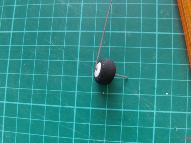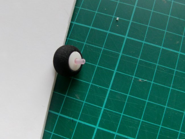 The wheels I use have quite large axle holes, but the cotton bud tube is also a good fit as a sleeve to reduce the size of the hole.